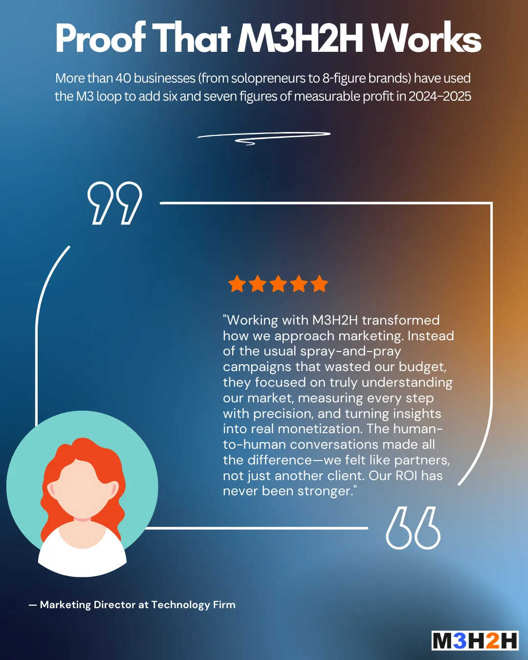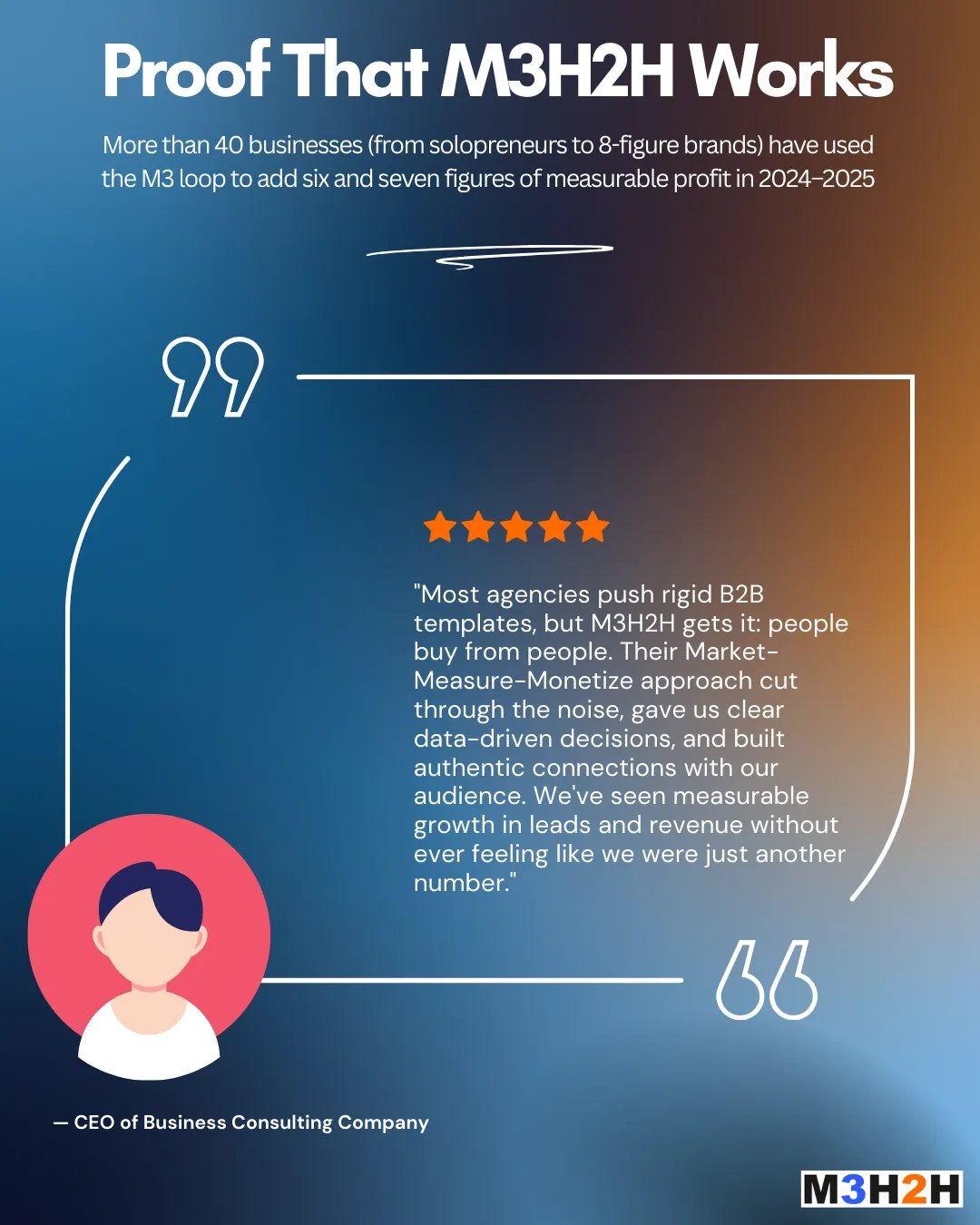In a world drowning in faceless algorithms and meaningless vanity metrics, M3H2H uses our proven M3 methodology to build authentic Human2Human connections that actually move the needle.